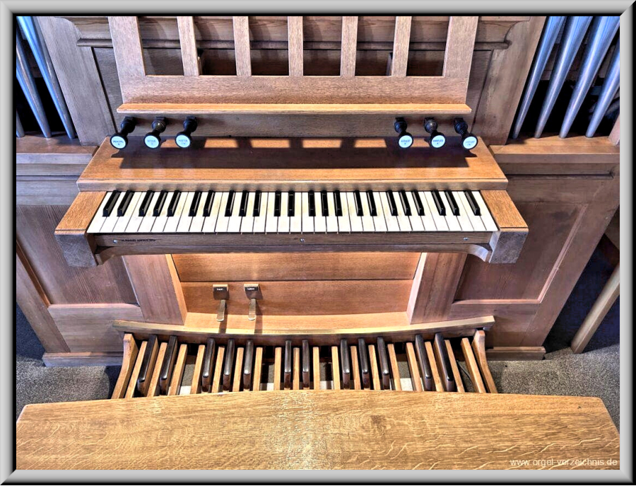 Emporenseite und umfasst 10 Register auf 2 Manualen und Pedal. Die
