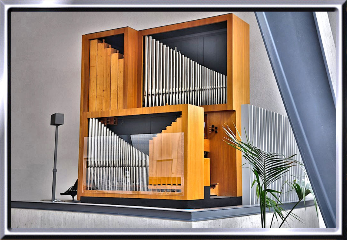 11 Registern auf 2 Manualen und Pedal. Das Instrument wurde für die