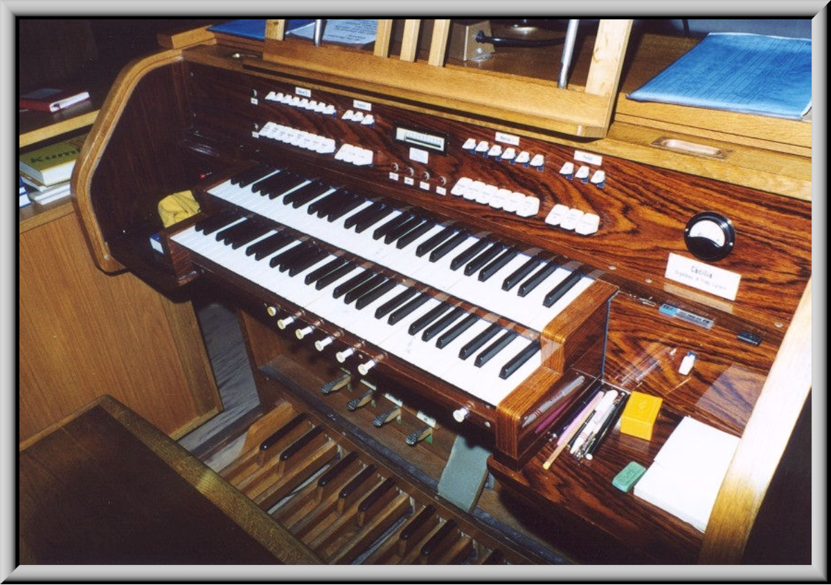 orgel mit 14 Registern auf 2 Manualen und Pedal (Opus 344, >Disposition). Um Platz für