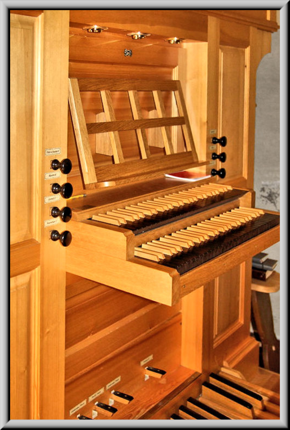 de huit jeux réels sur deux claviers et pédale. L’instrument est placé à