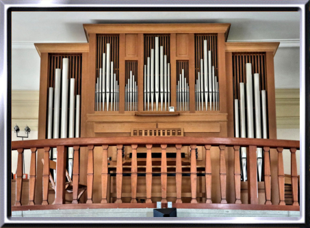 L’instrument pneumatique compte six jeux sur un seul clavier et pédale.
