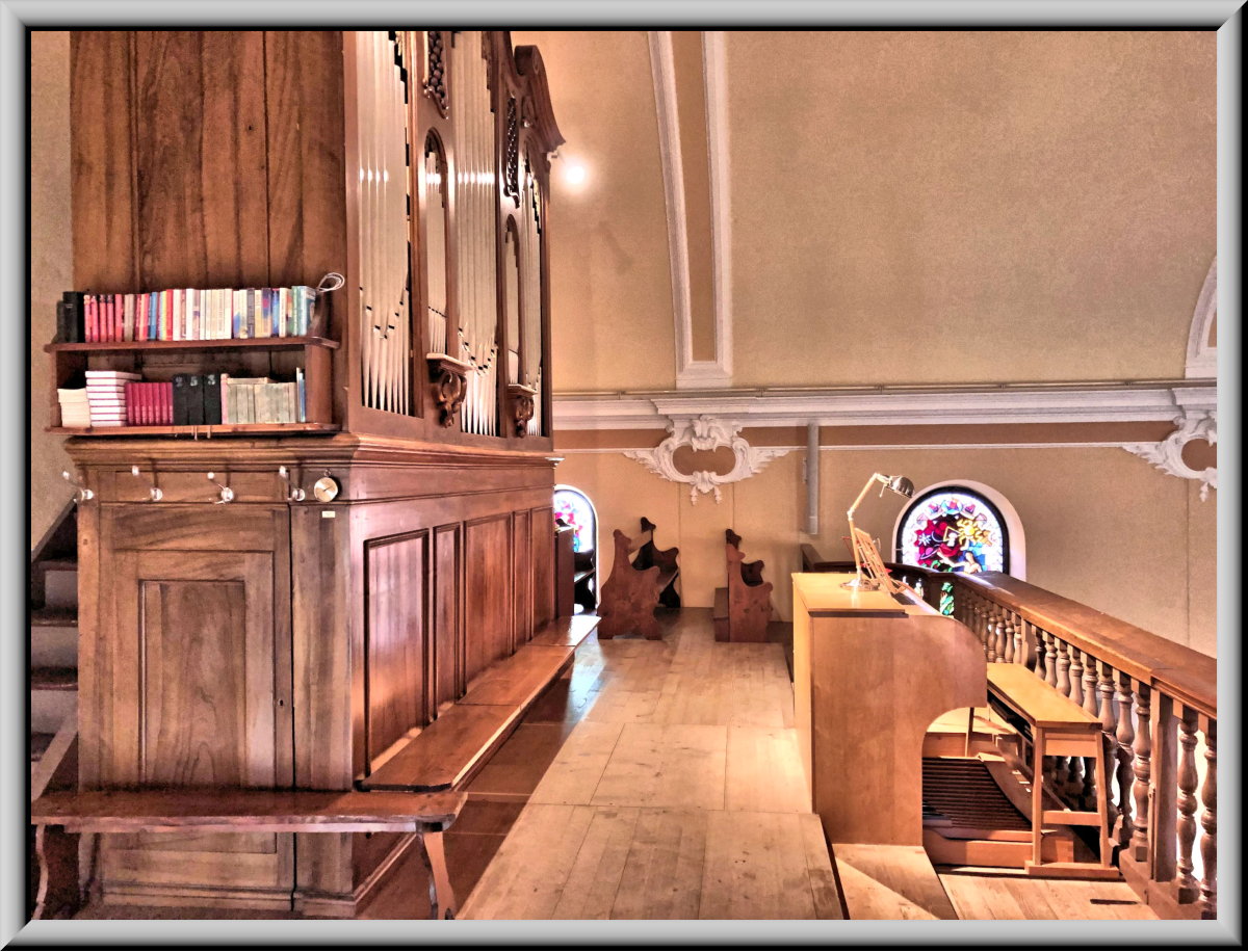 12 jeux sur deux claviers et pédale (>composition). Le buffet de l’orgue