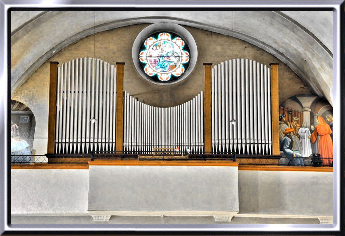 orgue de 18 jeux réels sur deux claviers et pédale. L’orgue est placé sur
