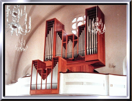 20 Registern auf 2 Manualen und Pedal. Die Trompete im Hauptwerk ist