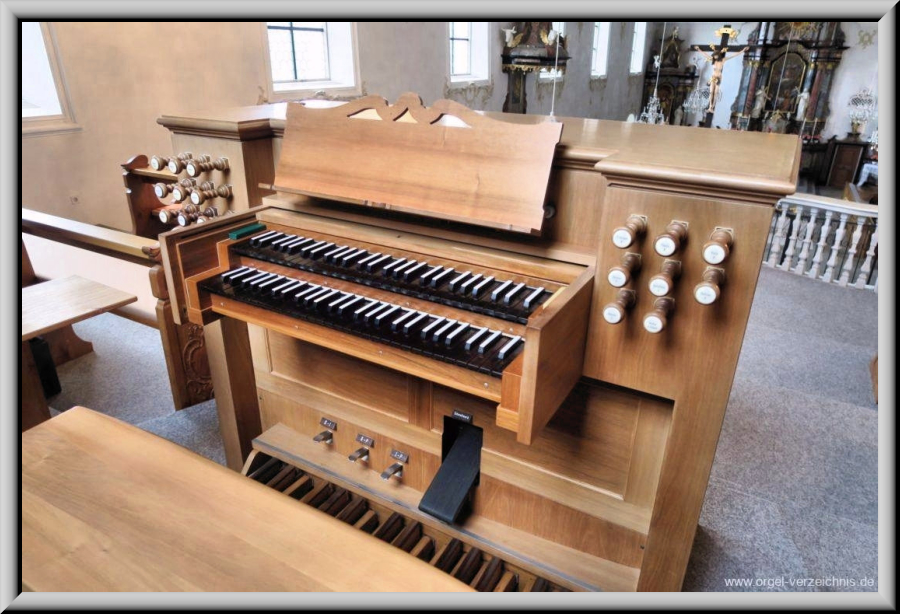 Graf AG, Sursee, mit 18 Registern auf 2 Manualen und Pedal. Die