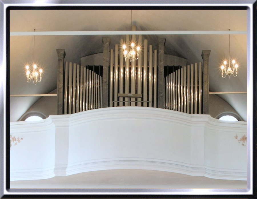 Neue, röhrenpneumatische Orgel mit 12 Registern auf zwei Manualen und Pedal