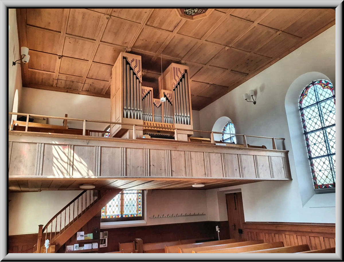 Kanzel durch Carl Theodor Kuhn, Männedorf, mit 9 Registern auf 2 Manualen