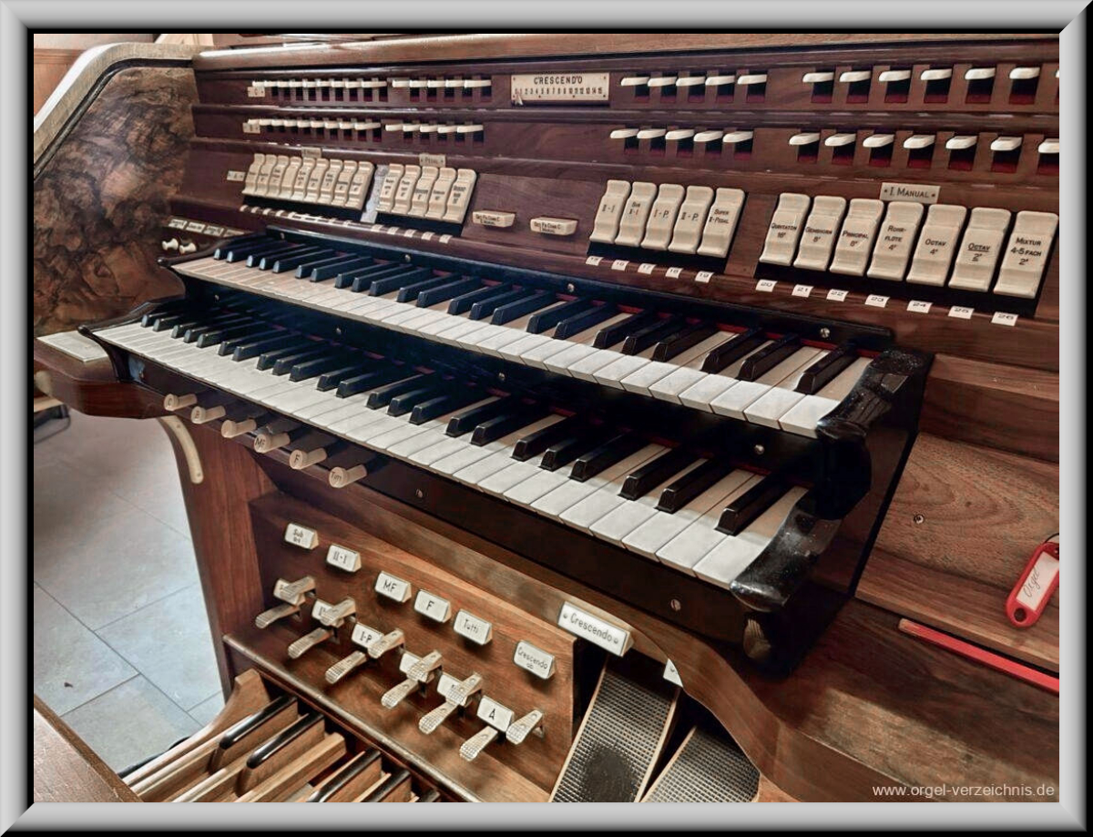 klingenden Registern auf 2 Manualen und Pedal.