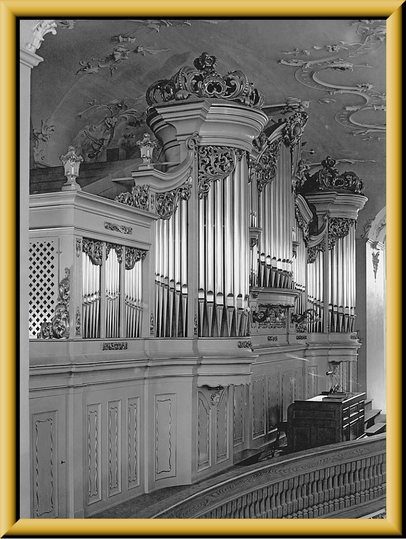 nimmt die ganze Empore in Anspruch und verdeckt die Fenster.