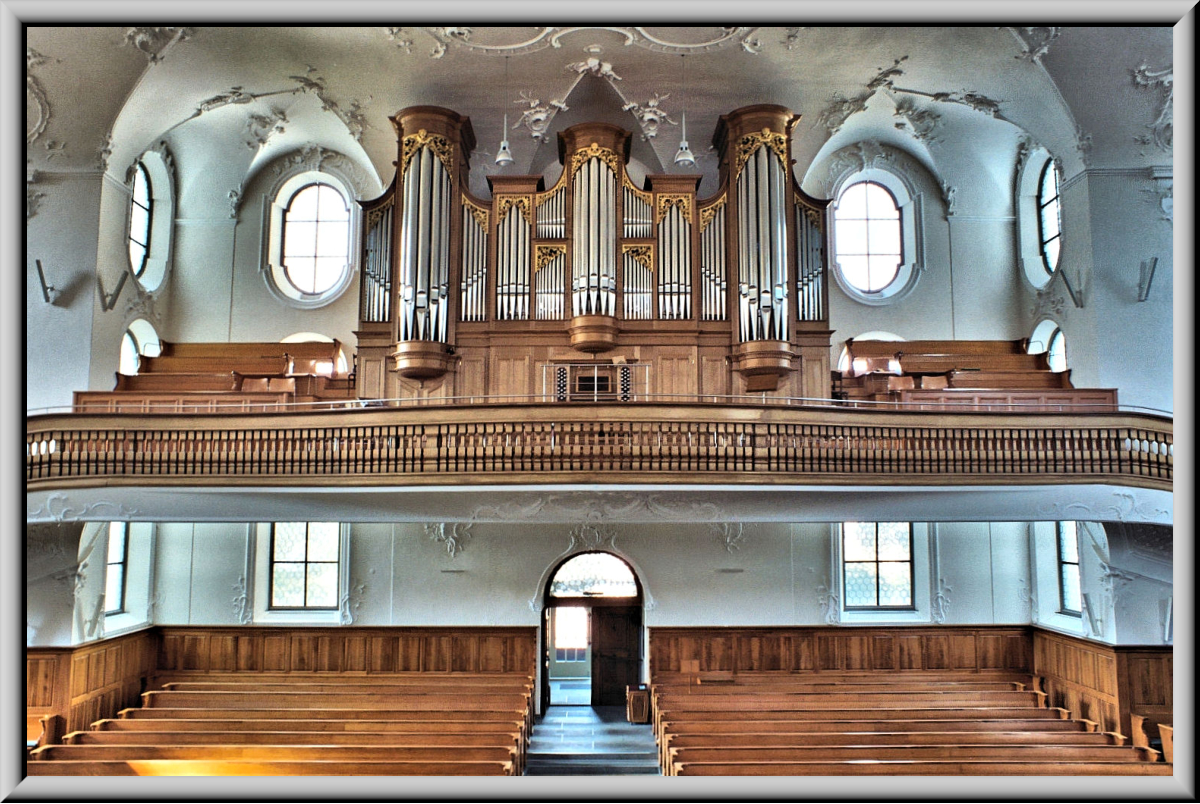 Bergmann, Donaueschingen (D), mit 28 Registern auf 2 Manualen und Pedal.