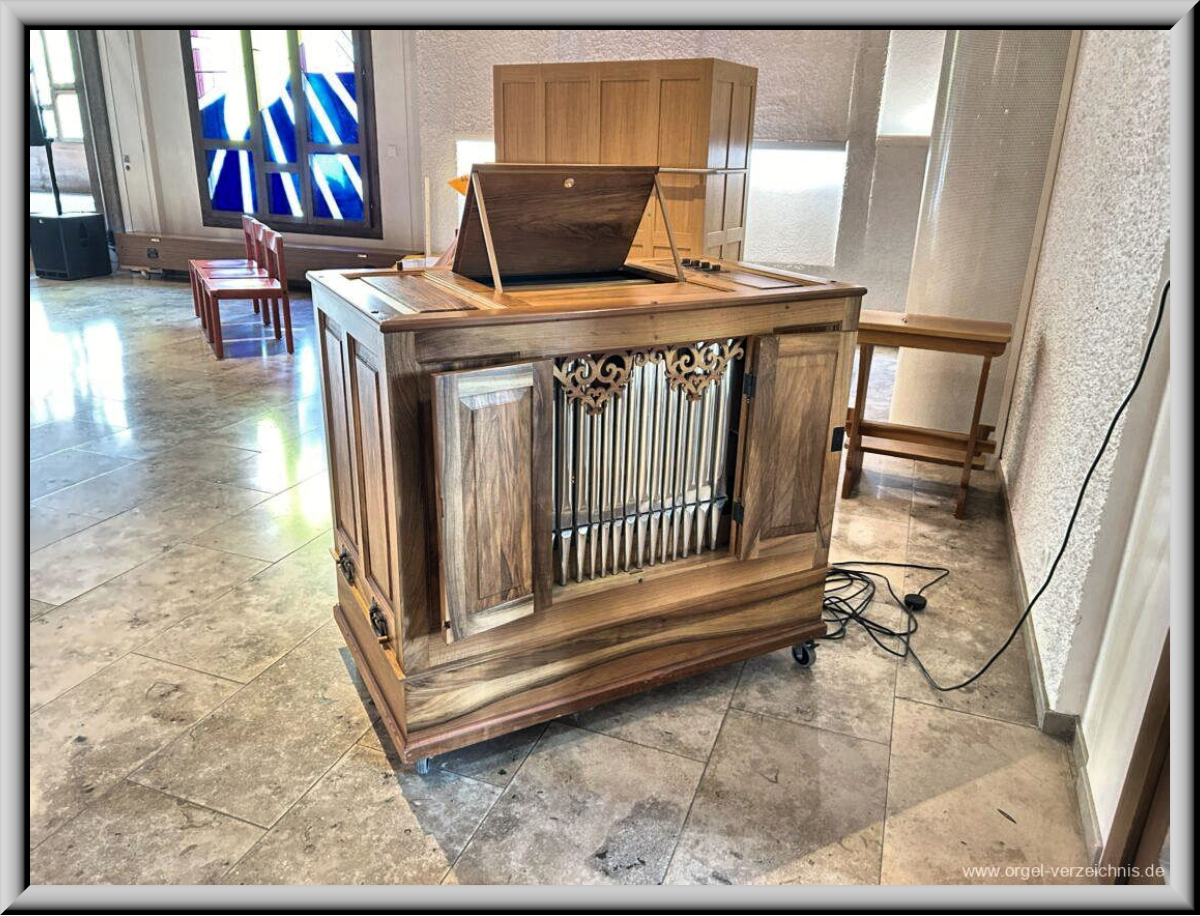 durch Orgelbau de Gier, Uhwiesen. Das mobile Instrument steht auf einem