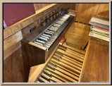 auf einem Manual und Pedal. Das Instrument wird auf einem niedrigen Podest