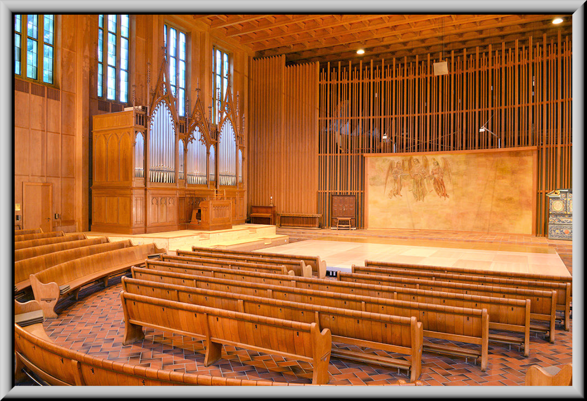 Kirche Bern als Bühnenorgel rechts neben der Chorbühne aufgestellt.