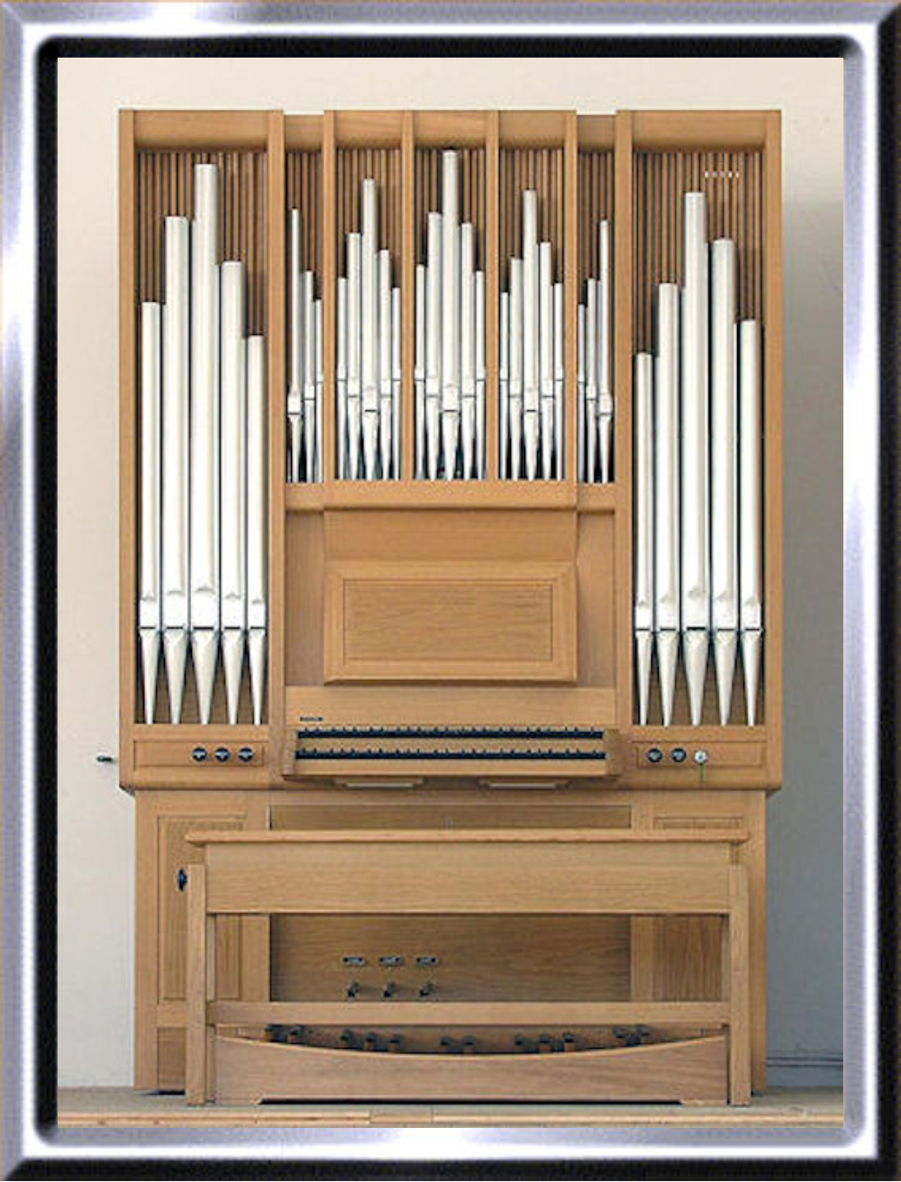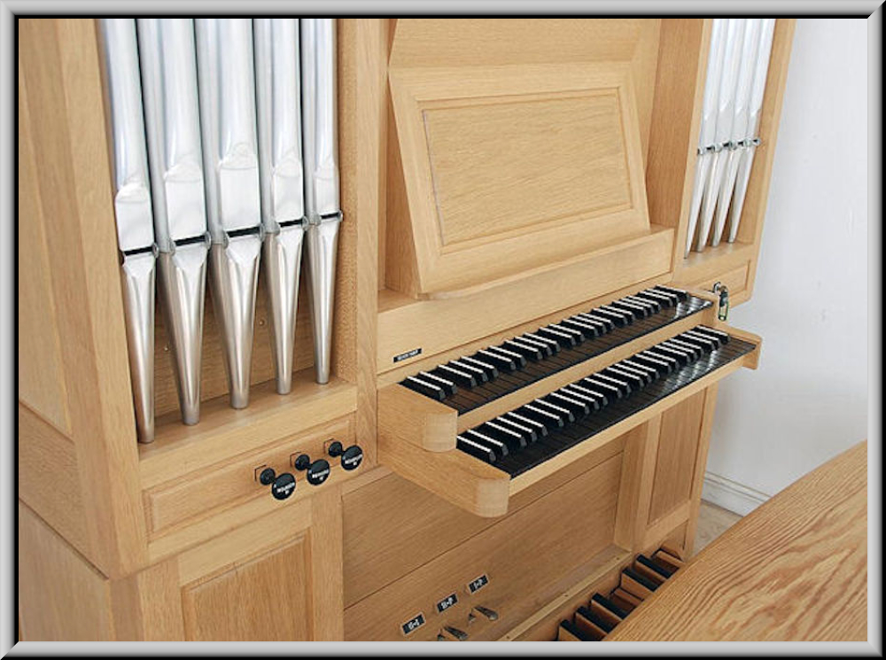 Aufstellung der Orgel mit 5 Registern auf 2 Manualen und Pedal im