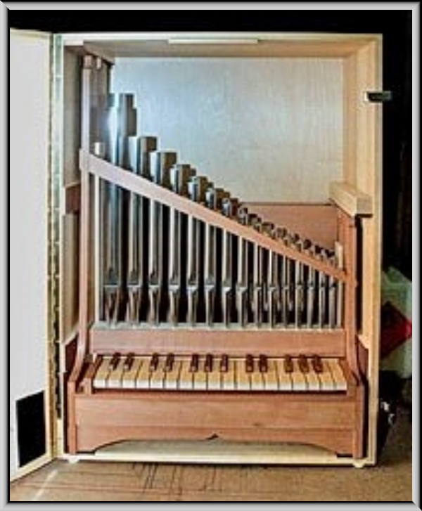 besitzt zwei klingende Register (Copel 8’ aus Ahornholz sowie Prin-