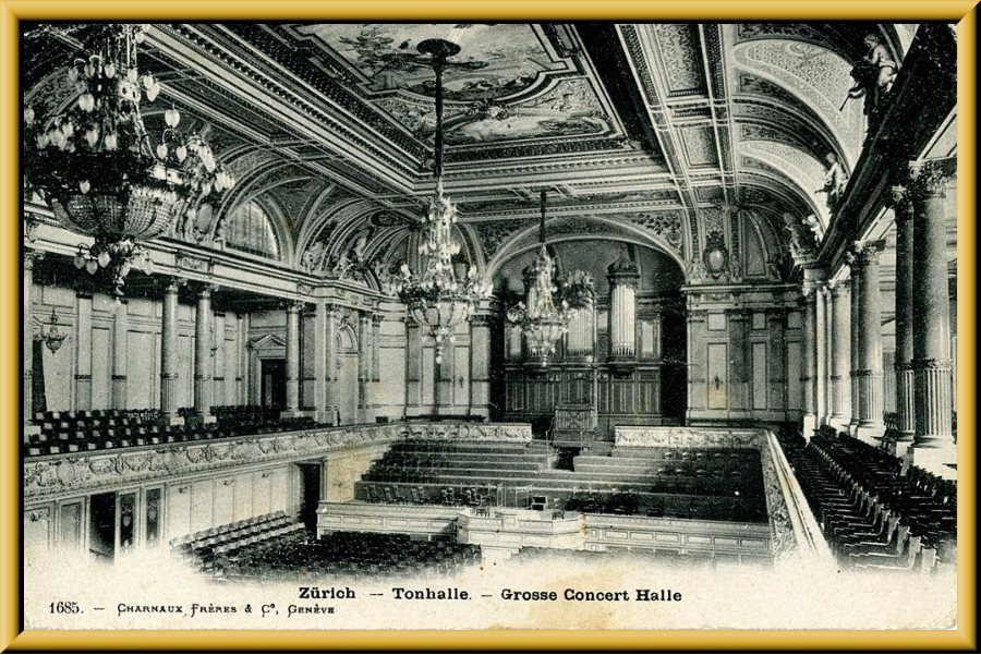 die Orgel in der alten Tonhalle auf dem heutigen Sechseläutenplatz.