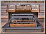 4 Manualen und Pedal. Der Spieltisch weist nur 3 Manuale auf. Das vierte